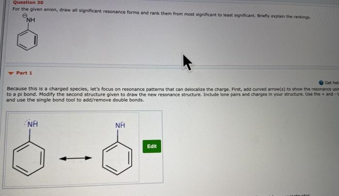 A Draw all significant resonance structures for the following compound using curved arrows to show how one resonance structure is converted into another NI H b Identify the most important resonance structure. Show the electron shift using curved - arrow notation. Draw all resonance structures of the following radical and make sure to show the necessary fishhook arrows.